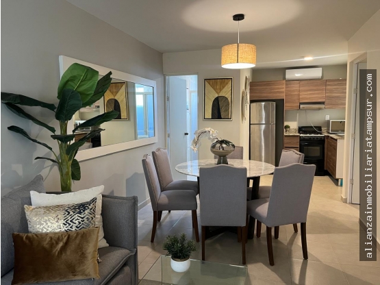 Cuenta con área de sala, comedor, cocina, área de servicio, 2 recámaras y un baño.