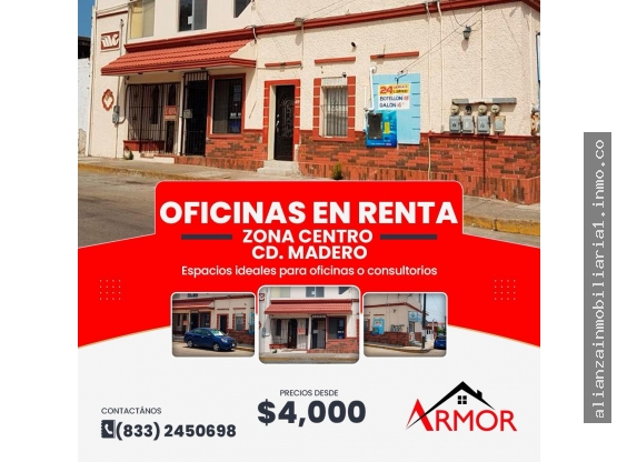 RENTA DE OFICINAS , EN LA CALLE ALLENDE , EN EL CENTRO DE CD MADERO , MUY CERCA DEL PALACIO MUNICIPAL .